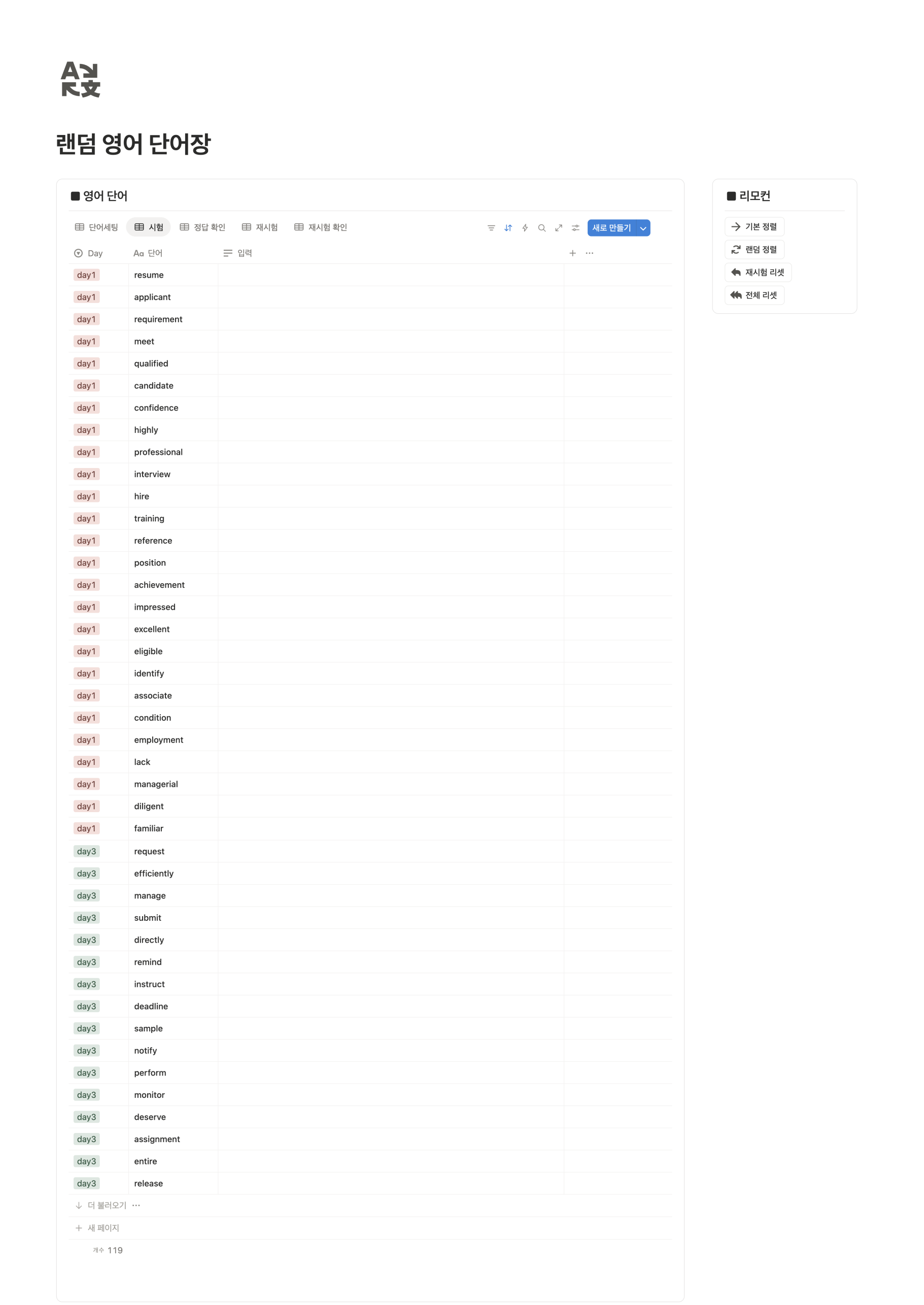 1. 영어 단어를 노션 데이터베이스로 입력합니다